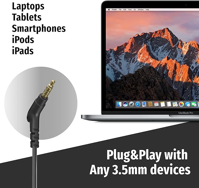 - UNIVERSAL 3.5MM JACK, MIC AND VOLUME CONTROL – Equipped with a 3.5mm jack for wide device compatibility, plus built-in mic and volume control for seamless calls and playback, doubling as reliable back to school earbuds for everyday use.