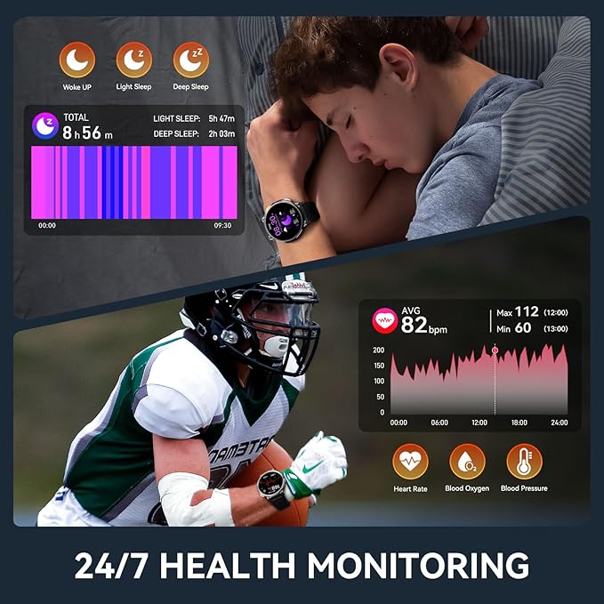 - ⌚️【Personal Health Assistant】- Foxhawk fitness tracker watch provides 24/7 heart rate and blood oxygen monitoring to help you better understand your body condition, especially when working late at night, traveling long distances or working outdoors, get a professional analysis of how to relax in a healthier and better way. Besides, Foxhawk military smart watch also has sleep tracker function to analyze your sleep quality. FOR SPORTS OR AVIATION USE ONLY, NOT FOR MEDICAL USE.