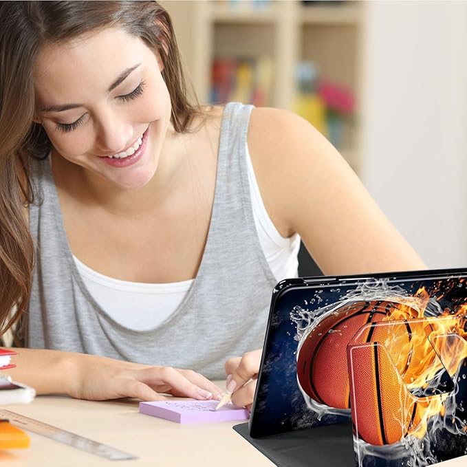 Case for Lenovo Tab P11 Plus Case 2021 (TB-J616F / J616X), 360 Degree Rotating Folding Stand,with Auto Sleep/Wake Case for Lenovo Tab P11 11” 2020 (TB-J606F TB-J606X),Basketball Fire and Water