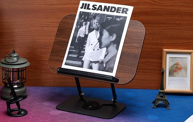 - 👍【Premium Quality Craftsmanship】 Crafted from high-quality MDF and Carbon Steel material, this book stand for reading is not only durable and sturdy but also adds a touch of aesthetics to your reading space. The sleek design complements any decor while providing a reliable platform for your favorite books. 13.4" x 9.5" large support panel with 6.0" long carbon steel twin pillars and 8.9"× 6.7" square base, which holds up to 6.6 lbs, firmly fixing your book or device on your work surface.