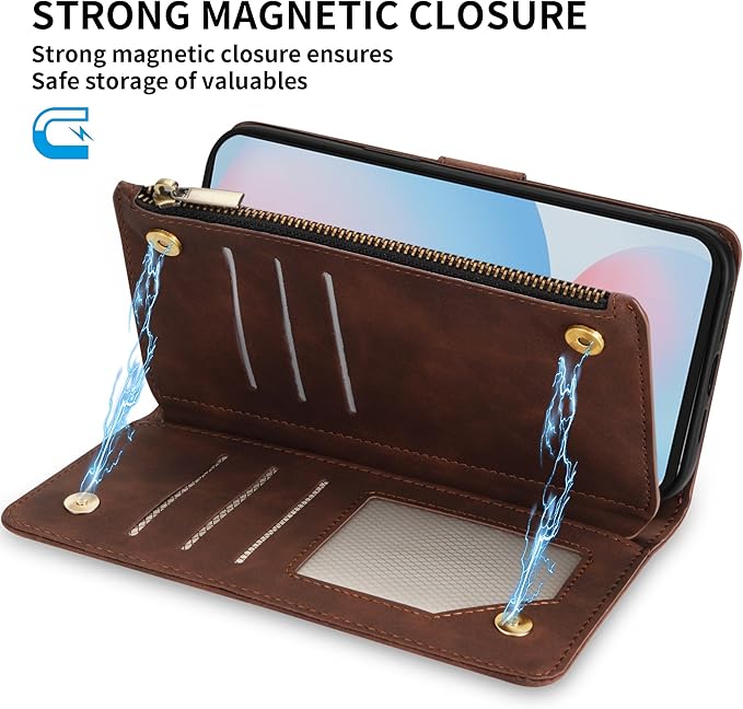 ZZXX for Samsung Galaxy S24 FE Wallet Case with RFID Blocking Card Slot PU Leather Zipper Flip Folio with Strap Kickstand Protective Cover for Samsung Galaxy S24 FE Case Wallet(Coffee-6.7 inch)