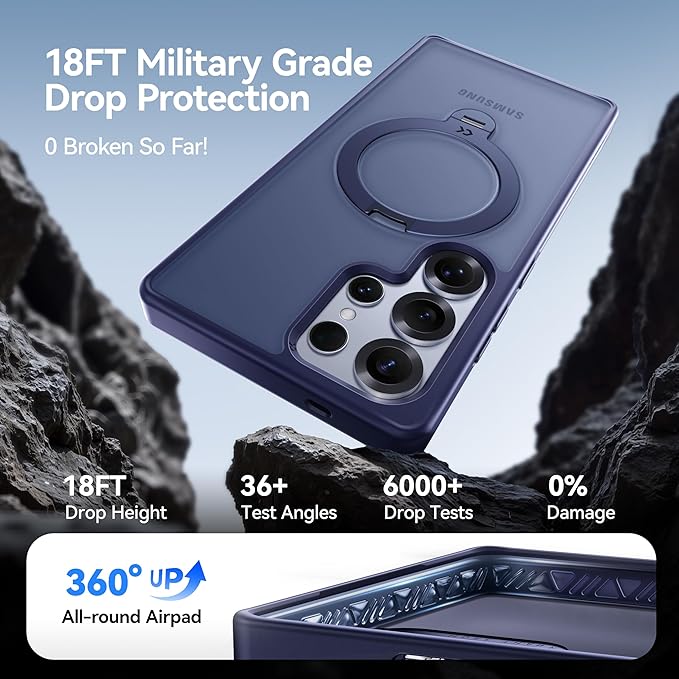 - 18FT Military-Grade Drop Protection: After 6 years of painstaking research, an upgraded 360° all-round airpad has been created! It has undergone over 6,000 high-altitude drop tests with a 0 damage record. The frame protrudes by 1.2mm+ to prevent scratches on the lens and screen. CASEKOO Samsung Galaxy S25 Ultra case, truly supreme protection