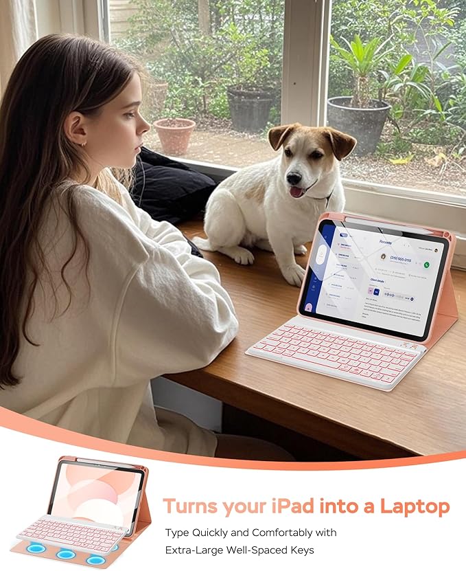 - Illuminate Your Typing: Enhance your iPad with a 7-color backlit keyboard and laser-etched keys. Perfect for any lighting, from late-night work to cozy cafés. Enjoy quiet, comfortable typing with customizable backlighting and ergonomic scissor-switch keys