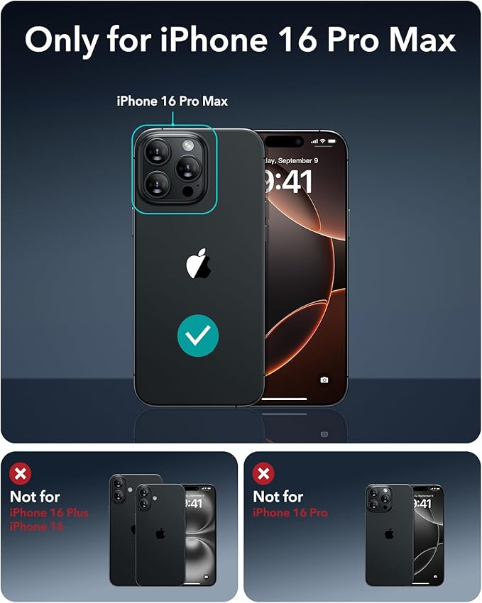 - Compatibility: only for iPhone 16 Pro Max; doesn't include camera lens protectors or built-in camera lens protector