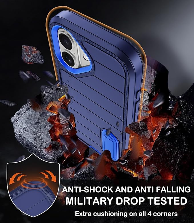 - [MULTI-LAYER DEFENSE PROTECTION] Our iPhone 16 heavy-duty case.It provides exceptional defense against drops,dirt,scrapes,and bumps.The hybrid construction of PC,TPU inner shell,and soft silicone outer shell disperses impacts and prevents scratches.Our case has passed military drop tests of up to 12 feet,guaranteeing your device's integrity in rough conditions.With its triple-layer design,it offers 360° full-body rugged protection,safeguarding every corner of your iPhone 16.