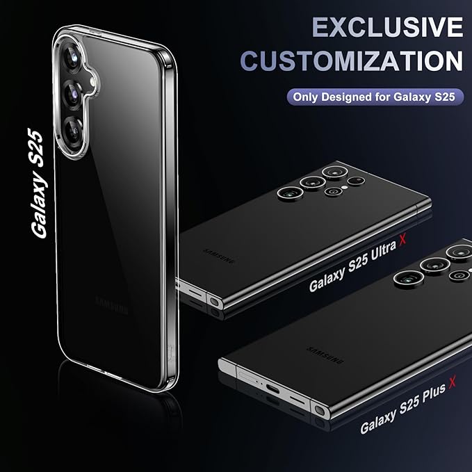 - 【Crystal Clear & Never Yellow】Using high-grade Germany Bayer's ultra-clear TPU material and Nano antioxidant layer, this Clear Samsung Galaxy S25 Case can block up 99.9% ultraviolet rays, stains, fingerprints and sweat effectively, keeping the longer-lasting clarity and never yellow over time,perfectly shows the original color of your phone. Always new transparent as the first day