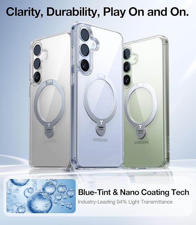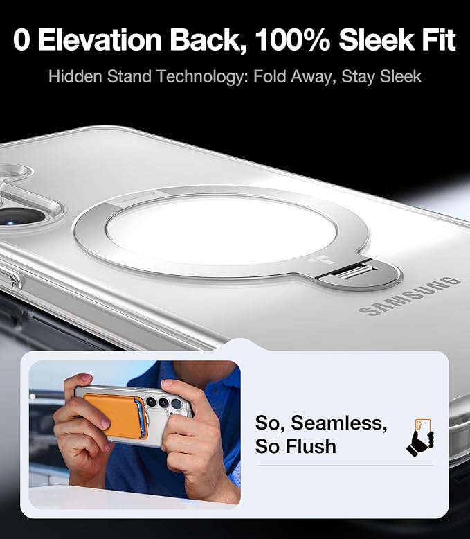 - 3-in-1 Versatile Ring: Not only a stand, but the ring also integrates charging and ring holder, all at once. Whether you prefer a vertical setup for video calls or a horizontal orientation for TV shows, this S25 Plus case with kickstand has got you covered. It doubles as a handy ring holder for you to hook when your hands are full, allowing effortless one-finger handling. The highly conductive zinc alloy kickstand enables fast charging with ease