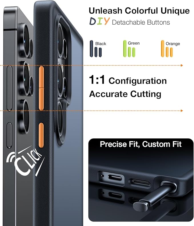 - [Independent Buttons, Perfect 1:1 Fit] The colorful independent buttons offer effortless pressing and swift responsiveness, delivering exceptional tactile feedback for an enhanced user experience. Fits your phone like a glove, ensuring snug protection with effortless clicking. With two complimentary sets of colored buttons, you can express your individuality. Your Detachable Colorful Buttons Customize Your Unique Style.