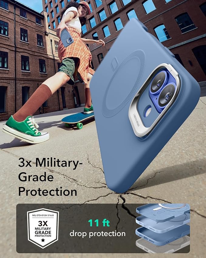 ESR for iPhone 16 Plus Case, Silicone Case with Stand, Compatible with MagSafe, Built-in Camera Stash Stand, Magnetic Phone Case, Cloud Series, Light Blue