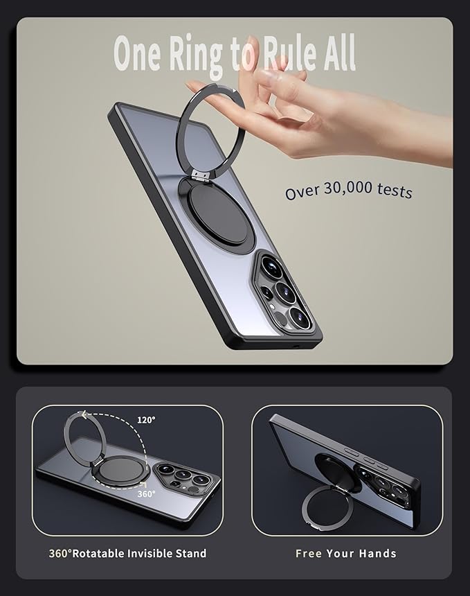 - [Magnetic, Stand, 360° Rotating Ring Multifunctional Phone Case] The stand is made of aviation-grade metal alloy material and can stably support your phone at any angle. Built-in N52 super strong magnet with strong adsorption force, allowing your phone to be firmly attached to objects with magnetic attraction such as magnetic car mounts, This product is Compatible with Magsafe & Wireless Charging.
