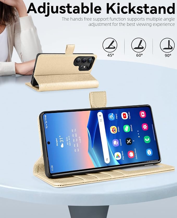 - Multi-functional: Features 4 card slots and a wallet compartment with magnetic closure, can secure 4 cards and some banknotes while closing perfectly; can fold the case for galaxy S25 Ultra to create a sturdy kickstand for hands-free viewing; equipped with RFID shielding technology to protect your card information from data theft by RFID scanners