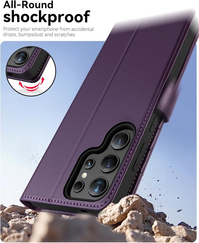 - Superior Protection: This wallet case for samsung S25 Ultra can protect your device from surface scratches, drops and dents; made of premium PU soft durable leather to prevent scratches and fingerprints, its natural surface texture provides a soothing, luxurious tactile feel; the TPU inner shell with raised edge and extra cushioning provides an all-around shockproof design