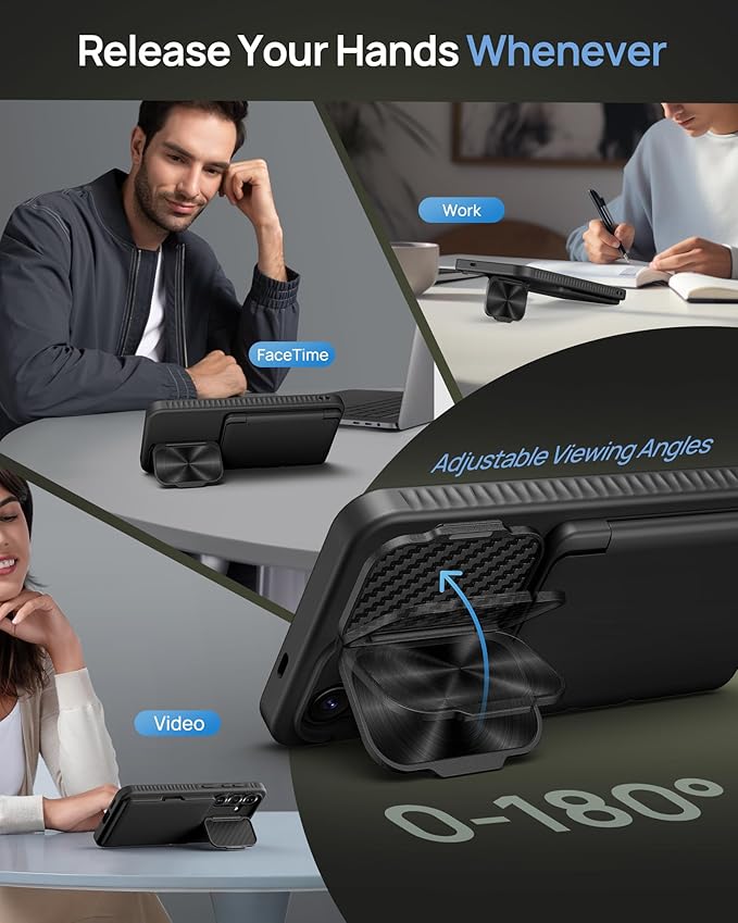 - ✅[Ready! Flexible 180° Camera Stand] The newly designed Samsung Galaxy S25 phone case integrates aesthetics, protection, and functionality. This innovative S25 camera cover not only as protection but also a flexible kickstand that can rotate from 0 to 180°. Our strong and stable stand enables hands-free viewing at any angle, both horizontally and vertically, enhancing user experience anytime and anywhere