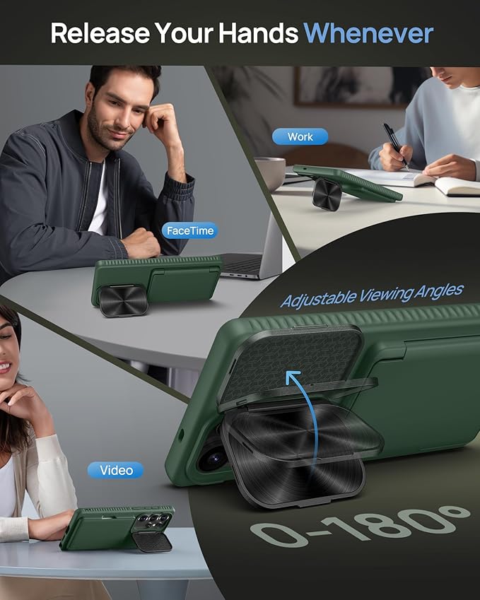 - ✅[Ready! Flexible 180° Camera Stand] The newly designed Samsung Galaxy S25 Ultra phone case integrates aesthetics, protection, and functionality.This innovative S25 Ultra camera cover not only as protection but also a flexible kickstand that can rotate from 0 to 180°. Our strong and stable stand enables hands-free viewing at any angle, both horizontally and vertically, enhancing user experience anytime and anywhere