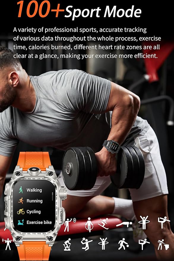 - Military Tactical Smart Watch, No fear of outdoor challenges --- This Smartwatch is Cold-Resistant, Dust-Proof, IP67 Wateproof, High-Temperature-Resistant, ensuring strong durability and drop resistance, making it the perfect companion for outdoor adventures