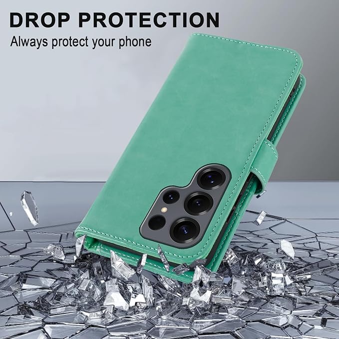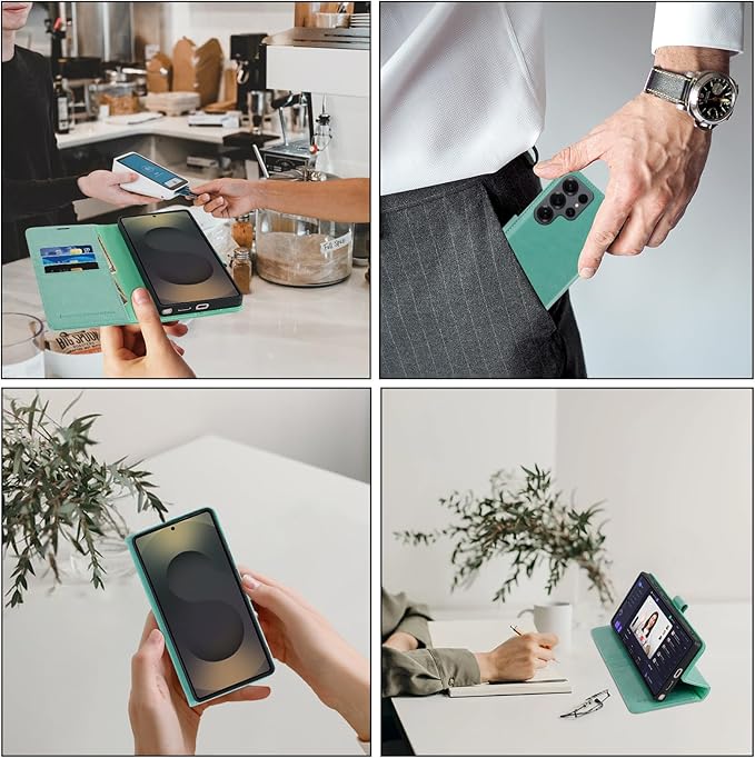 - All-around Protection: This Samsung S25 Ultra wallet case consists of a premium leather outer shell and a TPU inner shell. The outer leather has a luxurious and natural texture that is comfortable to the touch and protects against scratches and fingerprints. The soft and durable TPU inner shell with raised edges and cushioning design provides all-around protection for your phone, even if it is dropped from a high place without any damage.
