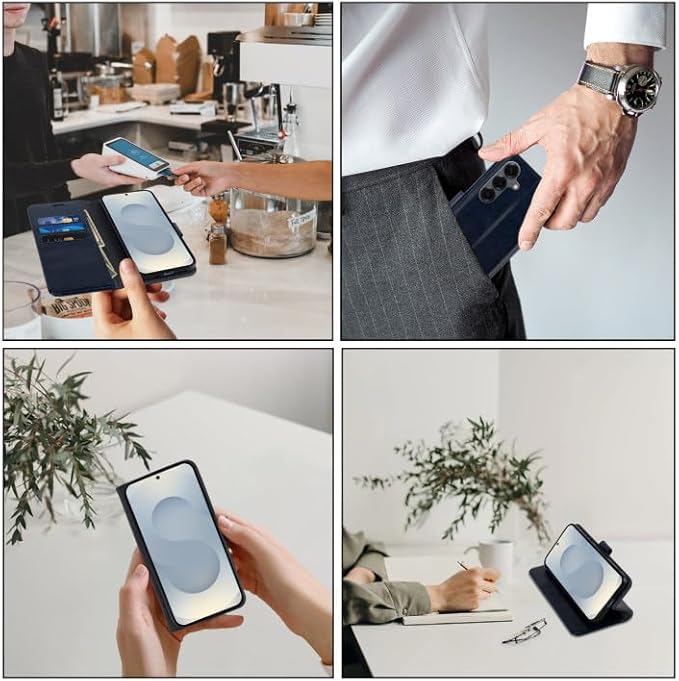 - All-around Protection: This Samsung S25+Plus wallet case consists of a premium leather outer shell and a TPU inner shell. The outer leather has a luxurious and natural texture that is comfortable to the touch and protects against scratches and fingerprints. The soft and durable TPU inner shell with raised edges and cushioning design provides all-around protection for your phone, even if it is dropped from a high place without any damage.