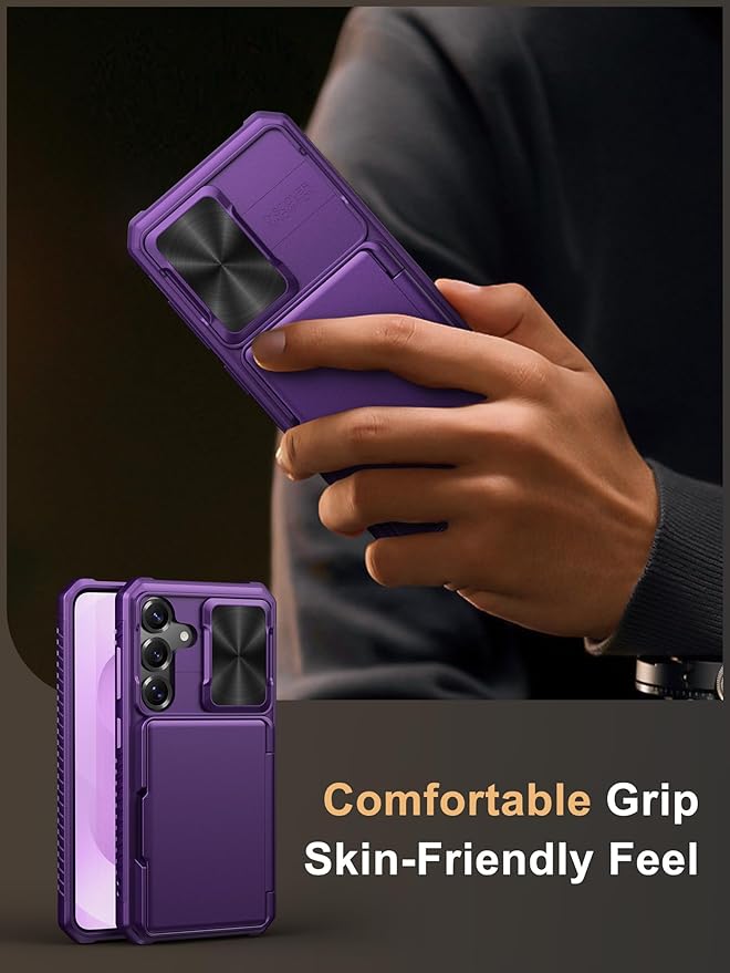Vihibii for Samsung Galaxy S25 Wallet Case, Built-in Card Holder (4 Cards), [RFID Blocking] & Slide Camera Cover, Military Grade Drop Protection, Rugged Case for Samsung Galaxy S25 6.2", Dark Purple
