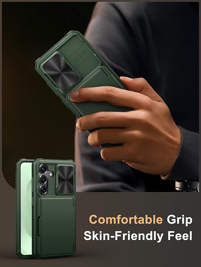 Vihibii for Samsung Galaxy S25 Wallet Case, Built-in Card Holder (4 Cards), [RFID Blocking] & Slide Camera Cover, Military Grade Drop Protection, TPU Soft Edge Case for Samsung Galaxy S25, Green
