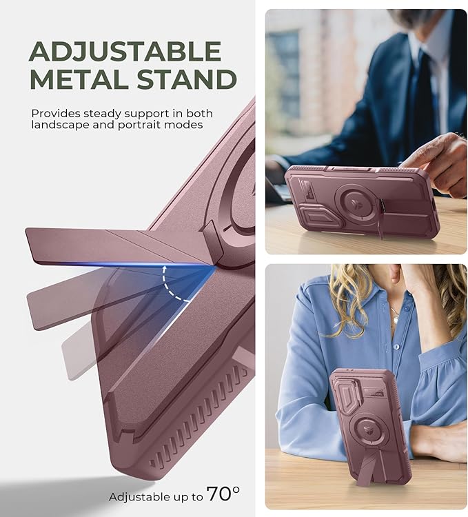 - Adjustable metal kickstand: Made from superior aluminum alloy, the adjustable stand is incredibly sturdy and long-lasting. It holds your phone securely in both landscape and portrait modes, ensuring great stability and convenience for hands-free viewing.