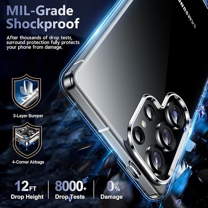 - 【Military-Grade Drop Protection】Certified by SGS (MIL-STD-810H), this Samsung Galaxy S25 Ultra Case has survived over 3,000 12FT drop tests. Additionally, this S25 Ultra case features multiple cushioning structures and 4-corner Upgraded airbags, dispersing the 99% of impact force, layer by layer. It provides optimum drop protection, effectively protects your phone from drops, scratches. A raised bezel around the camera and screen provide reliable protection for the vital parts of the phone