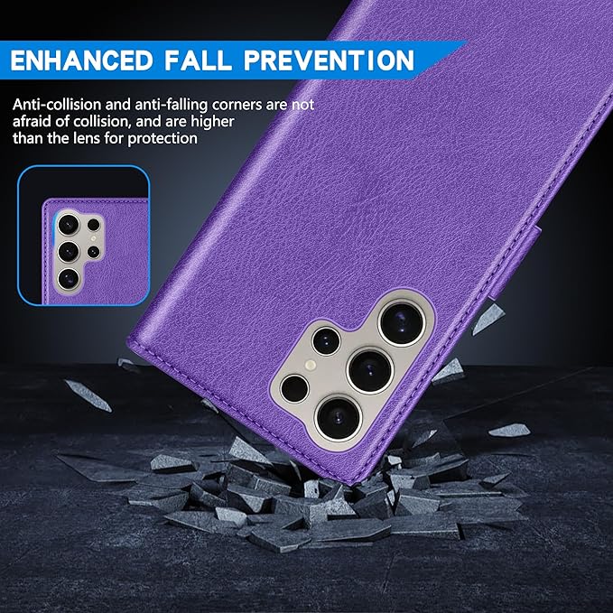 ZZXX for Samsung Galaxy S25 Ultra Wallet Case with [RFID Blocking] Card Slot Kickstand Magnetic Closure Leather Flip Fold Protective Phone Case for Galaxy S25 Ultra 5G Case Wallet(Purple-6.8 inch)