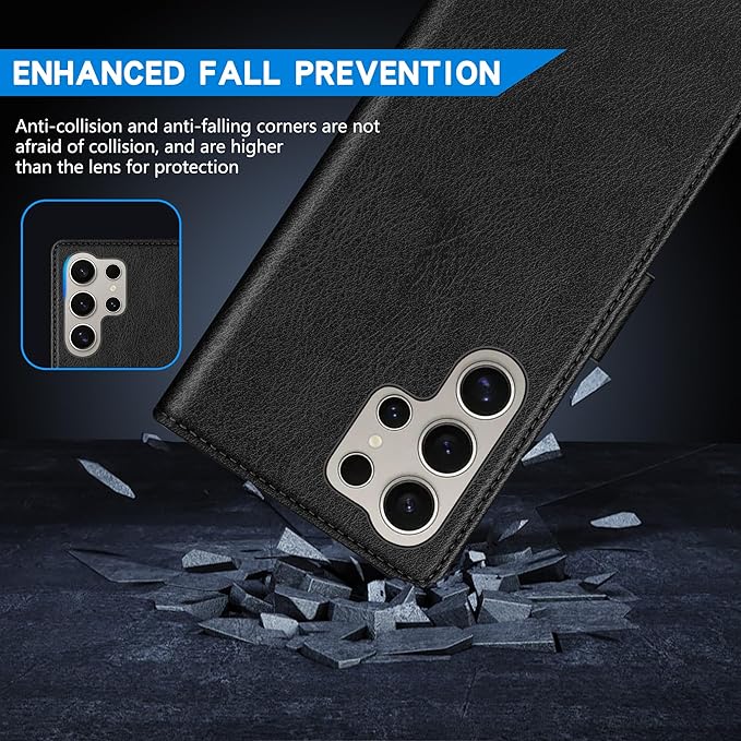 ZZXX for Samsung Galaxy S25 Ultra Wallet Case with [RFID Blocking] Card Slot Kickstand Magnetic Closure Leather Flip Fold Protective Phone Case for Galaxy S25 Ultra 5G Case Wallet(Black-6.8 inch)