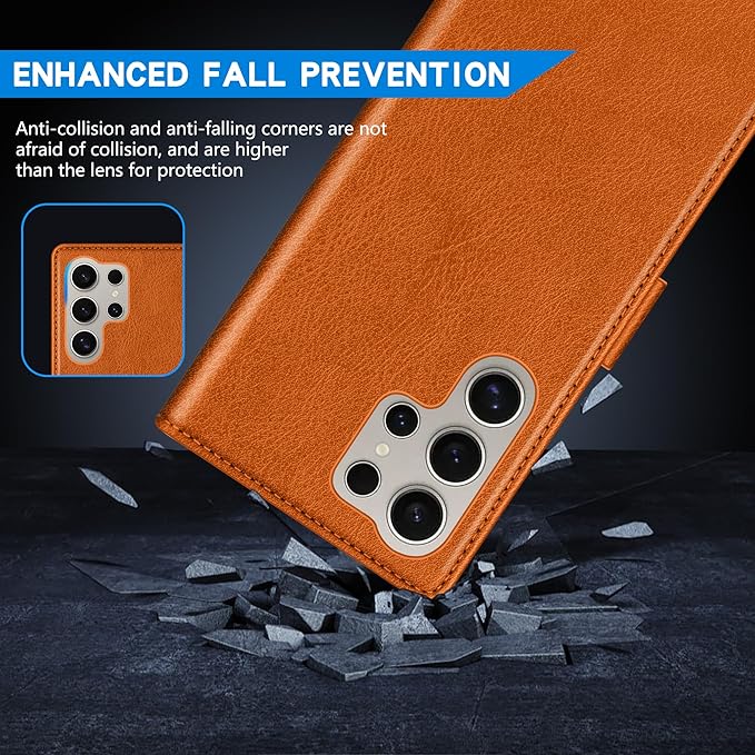 ZZXX for Samsung Galaxy S25 Ultra Wallet Case with [RFID Blocking] Card Slot Kickstand Magnetic Closure Leather Flip Fold Protective Phone Case for Galaxy S25 Ultra 5G Case Wallet(Brown-6.8 inch)