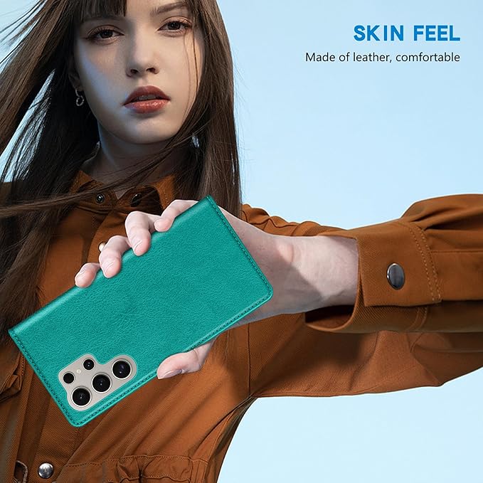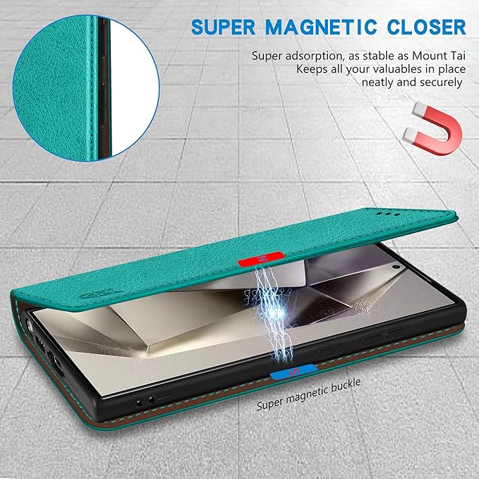 ZZXX for Samsung Galaxy S25 Ultra Wallet Case with [RFID Blocking] Card Slot Stand Strong Magnetic Leather Flip Fold Protective Phone Case for Samsung Galaxy S25 Ultra Case Wallet(Lake Blue-6.8 inch)