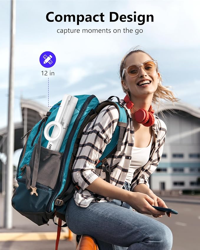 - 【 iPhone/Android + Detachable Remote】Works with MagSafe cases (iPhone 12-15) and Android via included rings. Detachable 33ft Bluetooth remote for group shots/selfies. Stores neatly on tripod.