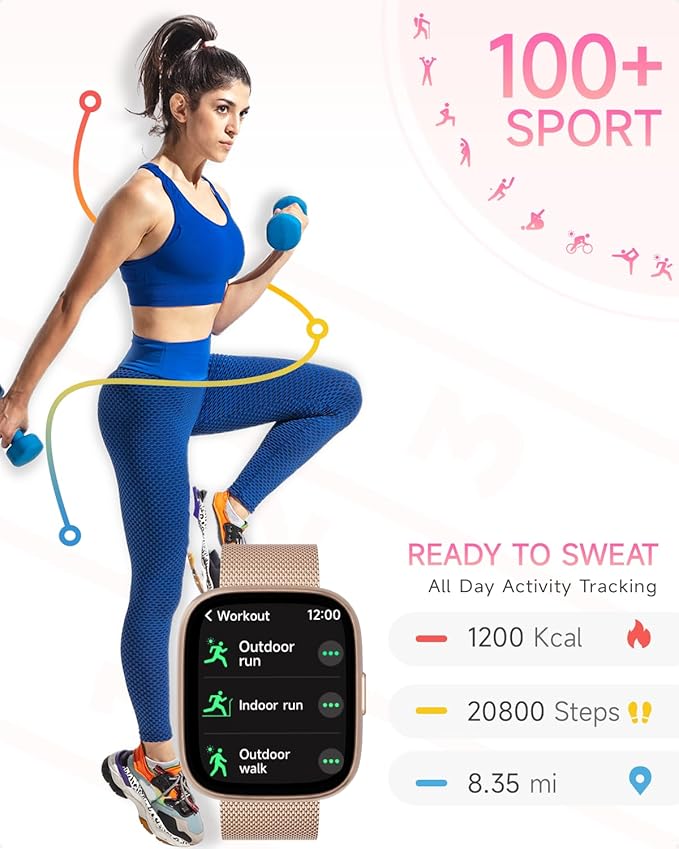 - Fitness & Activity Tracker: Track your health and fitness goals with TOOBUR's fitness watch for women. Monitor real-time heart rate, and stress levels, with instant alerts for any irregularities. And Your can track your period with menstrual cycle tracking and ovulation prediction as well. Choose from over 100 sports modes to track steps, calories, distance, and speed. With IP68 waterproofing, our smartwatch is perfect for swimming and all activities.