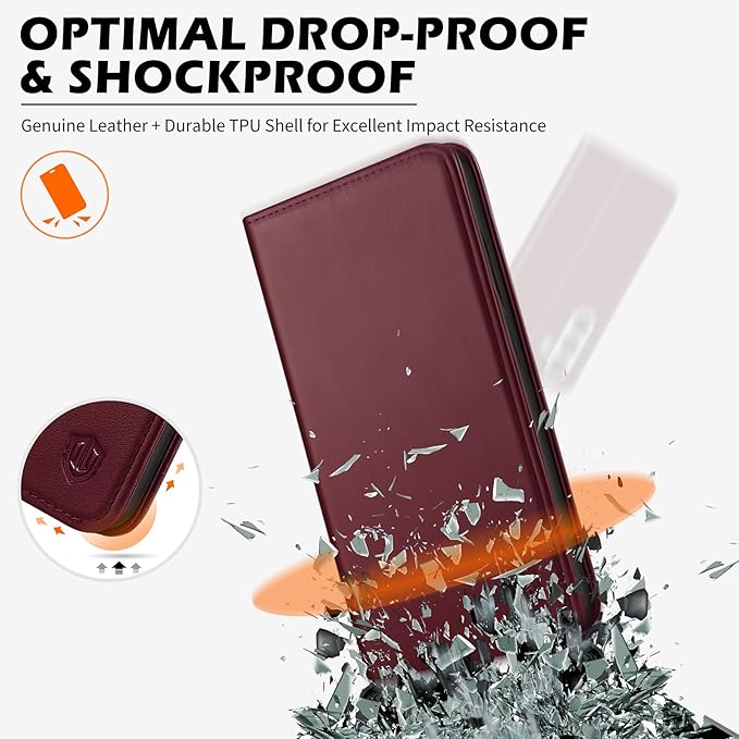 - 【GENUINE LEATHER & FULL PROTECTION】 1. SHIELDON Galaxy S25+ leather cases are made from top layer cowhide leather + TPU phone holder case. 1. These hides are selected for quality, strength, character and grain. 2. Soft full-body shell comes with shockproof edge and ensures your phone against scratches, drops and bumps. 3. The increased lips around the lens will protect your camera