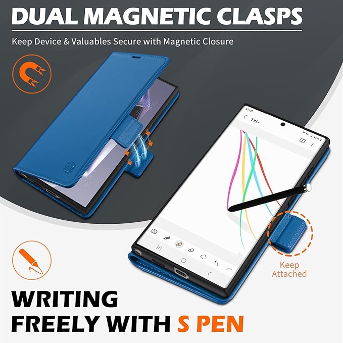 - 【CARD SLOTS WITH RFID BLOCKING】 This Galaxy S25 Ultra wallet case is to minimize bulky wallet and protect your phone. 1. It features 4 card slots and a full-length pocket to help you store driving license, cards and several cash. 2. Card slots are designed with RFID shielding technology that can block RFID signals and protect the personal information from unauthorized scanners