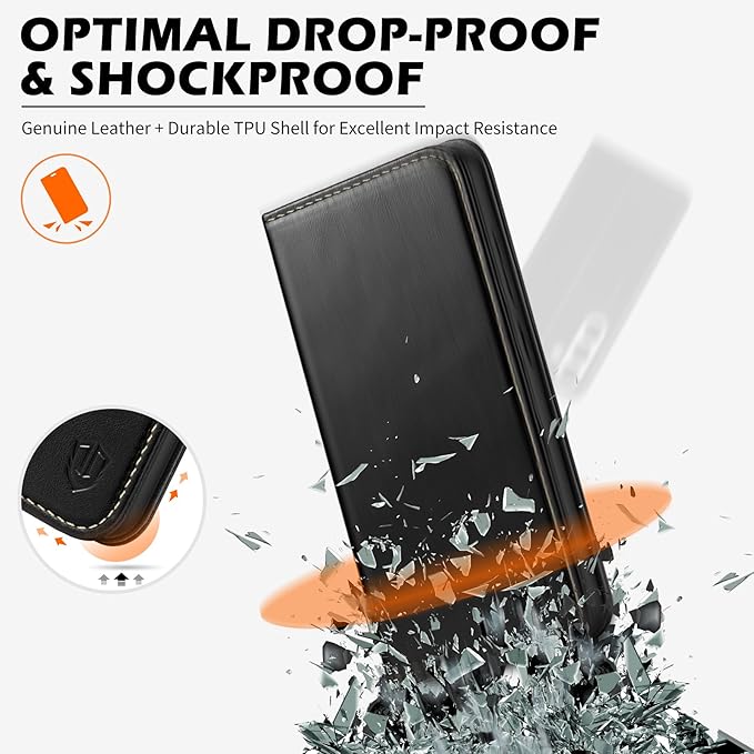 - 【GENUINE LEATHER & FULL PROTECTION】 1. SHIELDON Galaxy S25 leather cases are made from oil wax cowhide leather + TPU phone holder case. 1. Oil wax leather is often polished and oiled, which makes the surface shinier and sleeker. The more you use, the more retrospective it will be. 2. Soft full-body shell comes with shockproof edge and ensures your phone against scratches, drops and bumps. 3. The increased lips around the lens will protect your camera