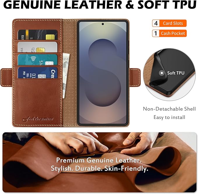 - 【GENUINE LEATHER & FULL PROTECTION】 1. SHIELDON Galaxy S25 Ultra leather cases are made from oil wax cowhide leather + TPU phone holder case. 1. Oil wax leather is often polished and oiled, which makes the surface shinier and sleeker. The more you use, the more retrospective it will be. 2. Soft full-body shell comes with shockproof edge and ensures your phone against scratches, drops and bumps. 3. The increased lips around the lens will protect your camera