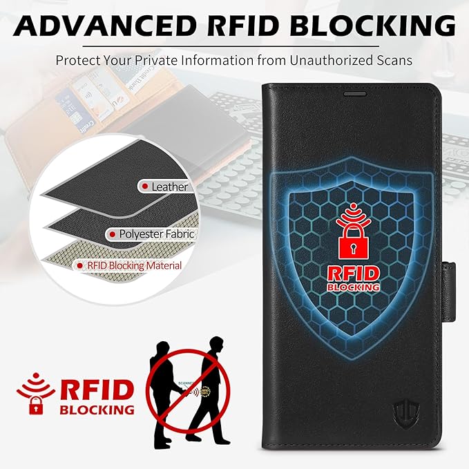 - 【CARD SLOTS WITH RFID BLOCKING】 This Galaxy S25 Ultra wallet case is to minimize bulky wallet and protect your phone. 1. It features 4 card slots and a full-length pocket to help you store driving license, cards and several cash. 2. Card slots are designed with RFID shielding technology that can block RFID signals and protect the personal information from unauthorized scanners