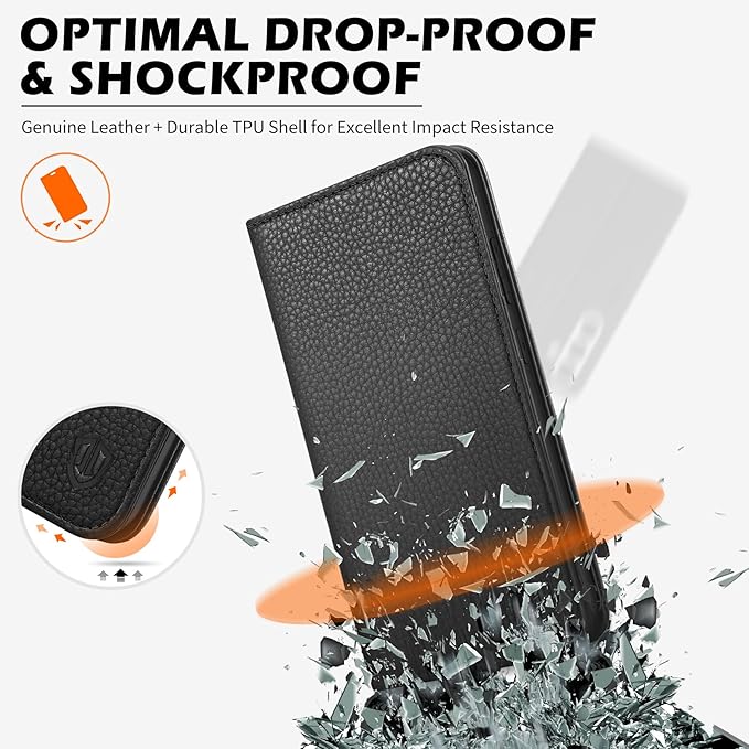 - 【GENUINE LEATHER & FULL PROTECTION】 1. SHIELDON Galaxy S25+ leather cases are made from cowhide leather with litchi pattern + TPU phone holder case. 1. These hides are selected for quality, strength, character and grain. 2. Soft full-body shell comes with shockproof edge and ensures your phone against scratches, drops and bumps. 3. The increased lips around the lens will protect your camera