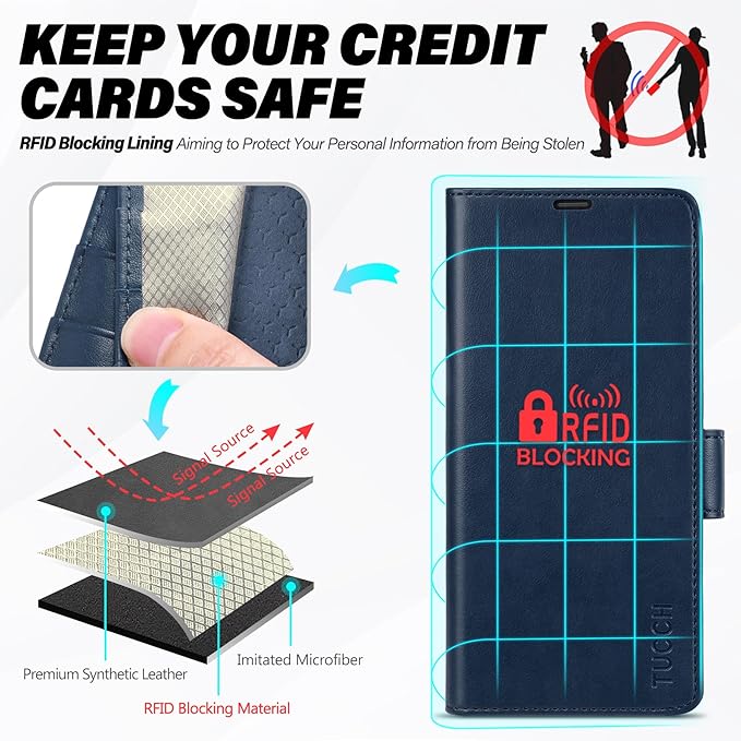 TUCCH Case for Galaxy S25 Ultra, Wallet Case with [TPU Shockproof Interior Case] Stand RFID Blocking Card Holder, Magnetic PU Leather Protective Flip Cover Compatible with Galaxy S25 Ultra, Dark Blue