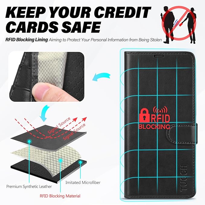 TUCCH Case Wallet for Galaxy S25 5G, Kickstand [RFID Blocking] Card Holder, Folio Magnetic PU Leather [TPU Shockproof Interior Case] Protective Folio Cover Compatible with Galaxy S25 6.2" 2025, Black