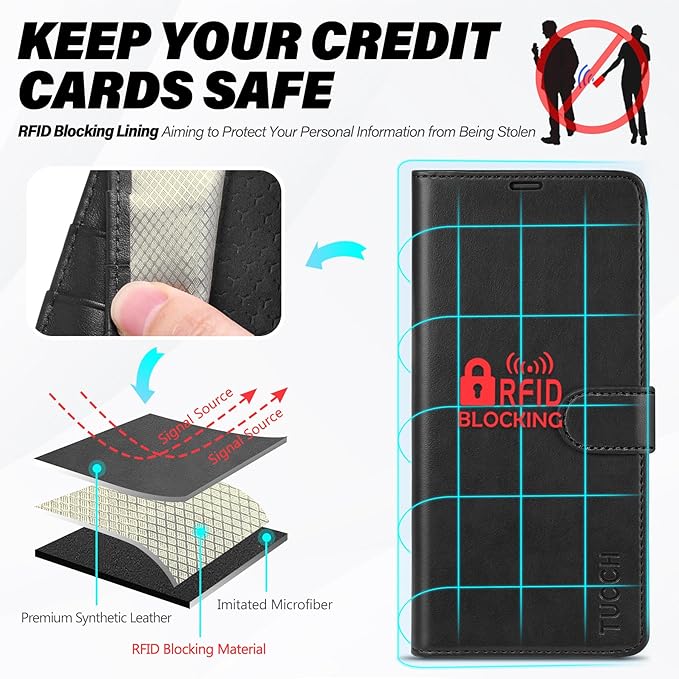TUCCH Case Wallet for Galaxy S25 Plus 5G, Kickstand [RFID Blocking] Card Holder, Folio Magnetic PU Leather [TPU Shockproof Interior Case] Protective Folio Cover Compatible with Galaxy S25 Plus, Black