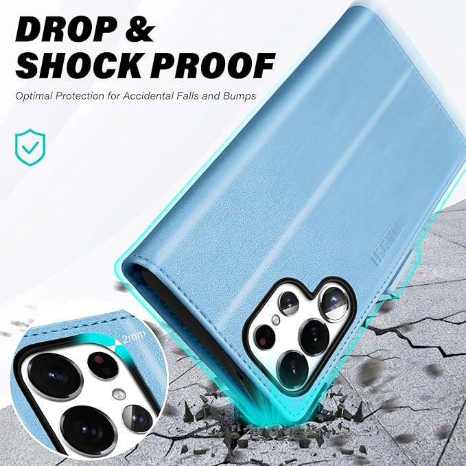 TUCCH Case Wallet for Galaxy S25 Ultra 5G, Magnetic PU Leather Kickstand [RFID Blocking] Card Slot Flip Cover with [TPU Shockproof Interior Case] Compatible with Galaxy S25 Ultra, Pearly Light Blue