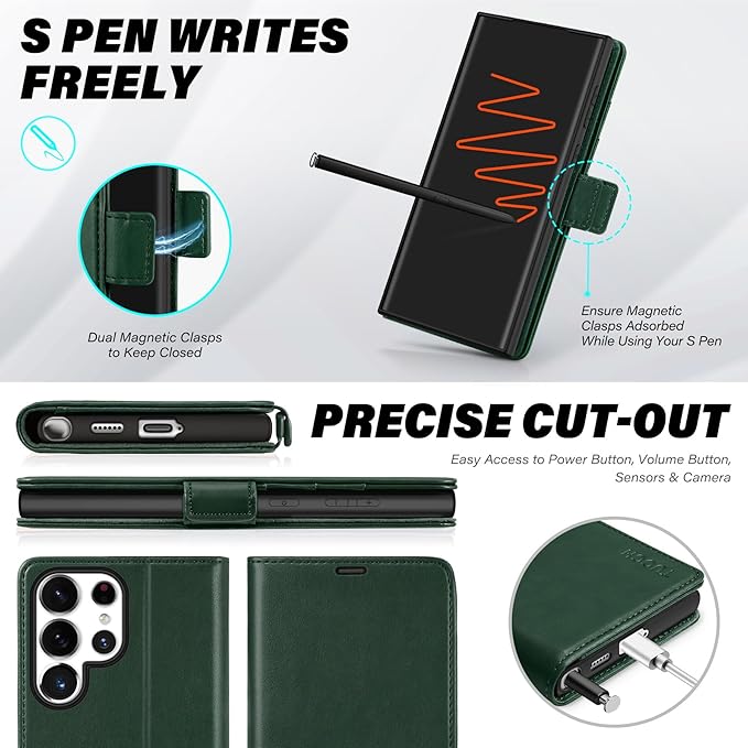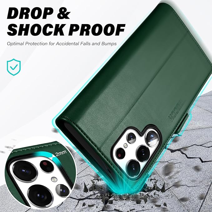 TUCCH Wallet Case for Galaxy S25 Ultra 5G, Magnetic PU Leather Stand [RFID Blocking] Card Slot Protective Folio Flip Cover with TPU Shockproof Interior Case Compatible with Galaxy S25 Ultra, Evergreen