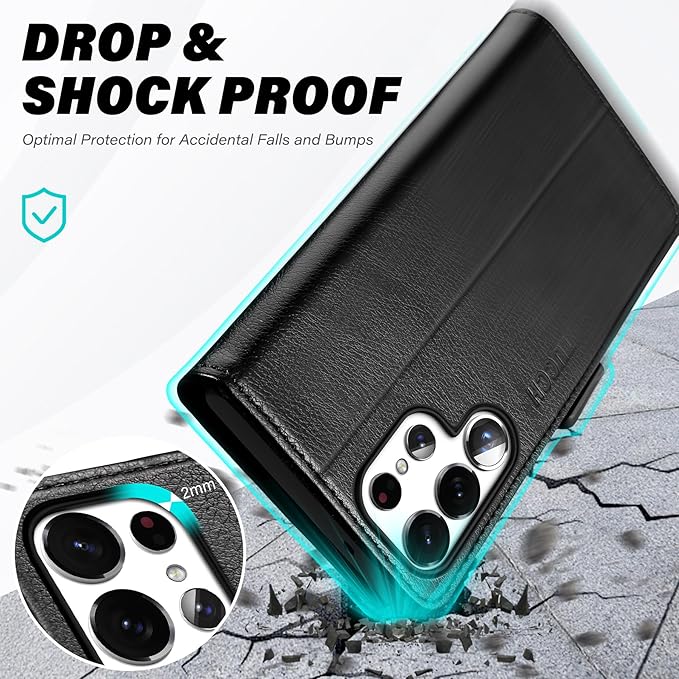 - RFID Blocking & Fully Protection: RFID blocking technology application effectively shields the signals and keeps your information safe. The Galaxy S25 Ultra 6.9" flip wallet leather case can cover all corners and provide great dual-layer protection to your smartphone. The durable soft TPU full-body inner shell comes with a shockproof edge and ensures your phone is against drops and bumps