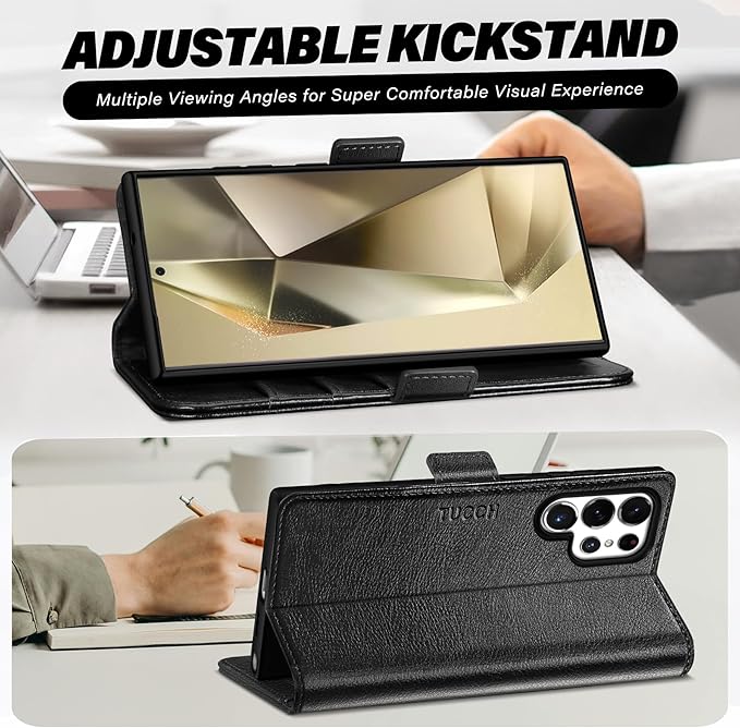 TUCCH Wallet Case for Galaxy S25 Ultra, Magnetic PU Leather Stand [RFID Blocking] Card Slots Protective Folio Cover with [TPU Shockproof Interior Case] Compatible with Galaxy S25 Ultra, Textured Black