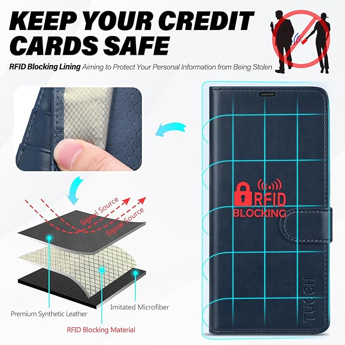 TUCCH Case for Galaxy S25, Wallet Case with [TPU Shockproof Interior Case] Stand RFID Blocking Card Holder, Magnetic PU Leather Protective Flip Cover Compatible with Galaxy S25 6.2" 2025 5G, Dark Blue