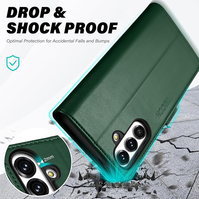 TUCCH Wallet Case for Galaxy S25 Plus 5G, Magnetic PU Leather Stand [RFID Blocking] Card Slot Protective Folio Flip Cover with TPU Shockproof Interior Case Compatible with Galaxy S25 Plus, Evergreen