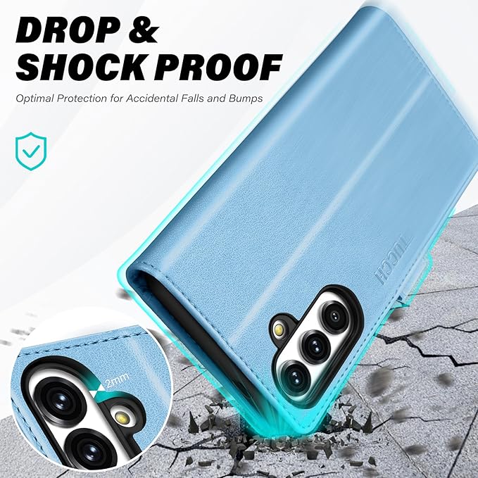 TUCCH Case Wallet for Galaxy S25 5G, Magnetic PU Leather Kickstand [RFID Blocking] Card Slot Flip Cover with [TPU Shockproof Interior Case] Compatible with Galaxy S25 6.2" 2025, Pearly Light Blue