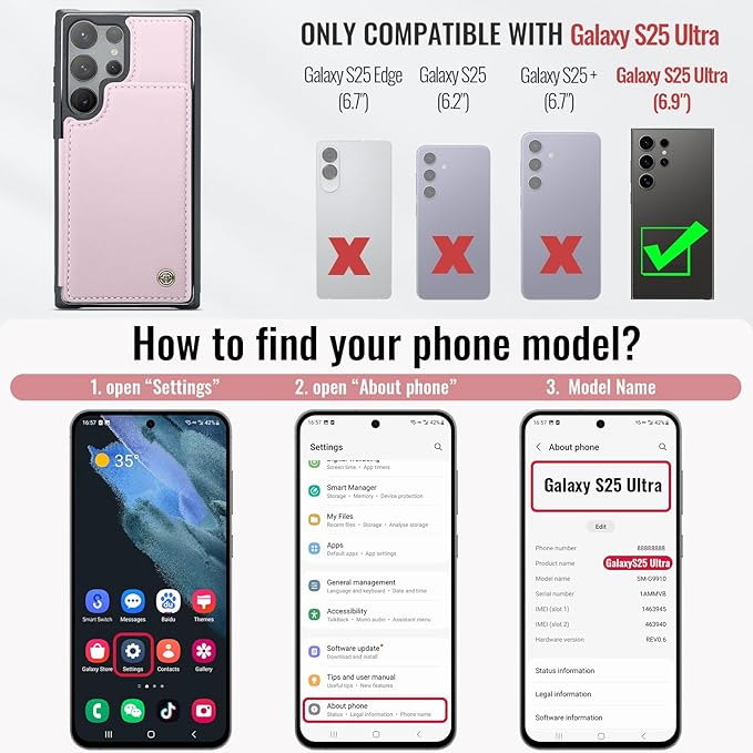 - for Samsung S25 Ultra Case with Card Holder: The for Galaxy S25 Ultra case is designed with card slots for drivers license, insurance cards, door access card, debit cards, etc; The case is easy to hold and remove, so you don’t need to take bulky purse to outdoor; This case for S25 Ultra is suitable for all ages of women & men