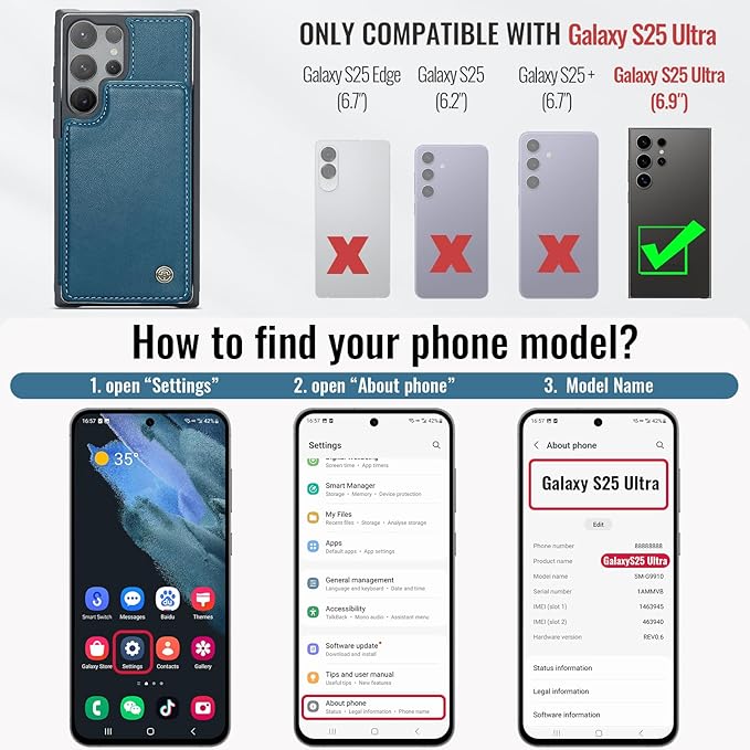 - for Samsung S25 Ultra Case with Card Holder: The for Galaxy S25 Ultra case is designed with card slots for drivers license, insurance cards, door access card, debit cards, etc; The case is easy to hold and remove, so you don’t need to take bulky purse to outdoor; This case for S25 Ultra is suitable for all ages of women & men