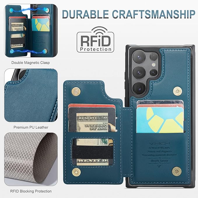 - for Samsung Galaxy S25 Ultra Case Wallet: Made of high quality durable PU leather and soft TPU inner shell, the craftsmanship phone wallet case is compatible with Galaxy S25 Ultra; The case for Samsung S25 Ultra will make your work and life more convenient while protecting your phone screen